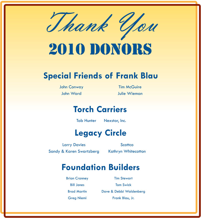 Donation Levels and Benefits Special Friends of Frank Blau - $10,000